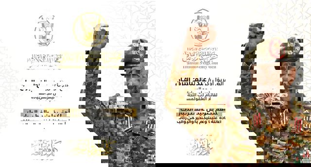 رئيس مجلس السيادة الإنتقالي القائد العام للقوات المسلحة الفريق أول ركن #عبدالفتاح_البرهان، يلقي كلمة للشعب السوداني فى الساعة السابعة من مساء اليوم، وذلك بمناسبة عيد الفطر المبارك.
