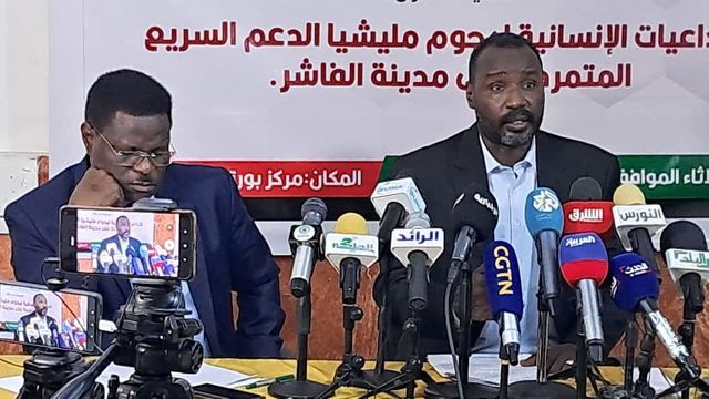 في تصريح صحفي، أعلن حاكم إقليم دارفور المكلف ووزير الصحة بحكومة الإقليم، بابكر حمدين، أن الحصار الذي تعرضت له مدينة الفاشر يمثل جريمة وفق القانون الدولي الإنساني، حيث يعرض حياة المدنيين للخطر عبر تجويعهم وحرمانهم من حق الحياة.