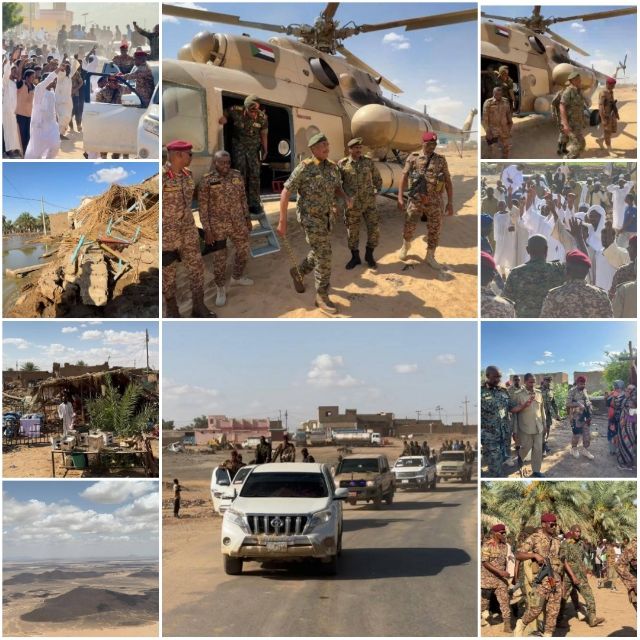 رئيس مجلس السيادة القائد العام للقوات المسلحة يتفقد المناطق المتأثرة بالسيول والأمطار بولاية نهر النيل