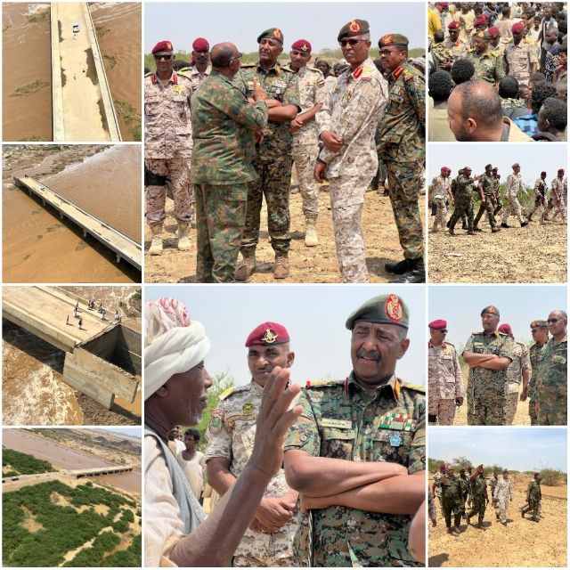 تفقد رئيس مجلس السيادة الإنتقالي القائد العام للقوات المسلحة الفريق أول ركن عبدالفتاح البرهان المناطق المتأثرة بالسيول والأمطار بمحلية طوكر يرافقه والي ولاية البحر الأحمر الفريق ركن مصطفى محمد نور.