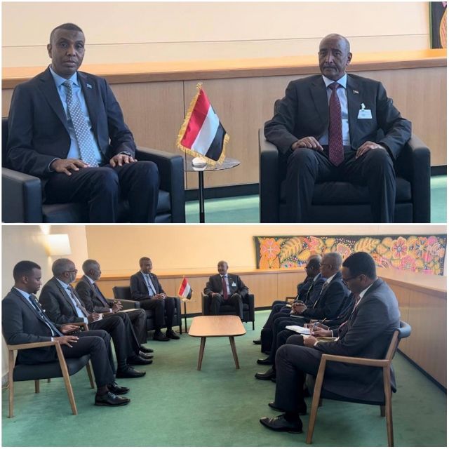 استقبل رئيس مجلس السيادة القائد العام للقوات المسلحة الفريق أول ركن عبدالفتاح البرهان اليوم السيد حمزة عبدي بري رئيس وزراء الصومال على هامش أعمال إجتماعات الدورة ال(٧٩) للجمعية العامة للأمم المتحدة بنيويورك.