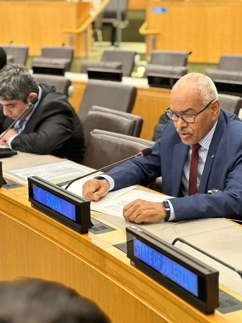 كما جدد دعم السودان للقضية الفلسطينية وحق الشعب الفلسطيني في نيل حقوقه كاملة وإنهاء الاحتلال الإسرائيلي غير الشرعي، مستندًا إلى الرأي الاستشاري الصادر عن محكمة العدل الدولية، ودعا إلى حشد الجهود الدولية للضغط على إسرائيل للالتزام بالقرارات الدولية وحل الدولتين.