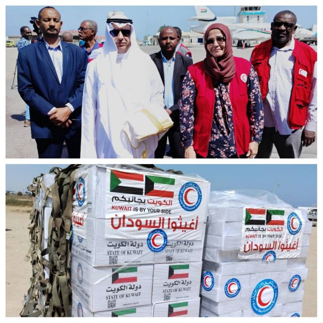وصلت إلى مطار بورتسودان اليوم الخميس طائرة مساعدات كويتية تابعة لجمعية الهلال الأحمر الكويتي، تحمل على متنها مواد غذائية وإغاثية متنوعة وخيام. وكان في استقبالها عند الوصول سفير الكويت لدى السودان الدكتور فهد مشاري الظفيري، والأمين العام لجمعية الهلال الأحمر السوداني عايدة آدم.