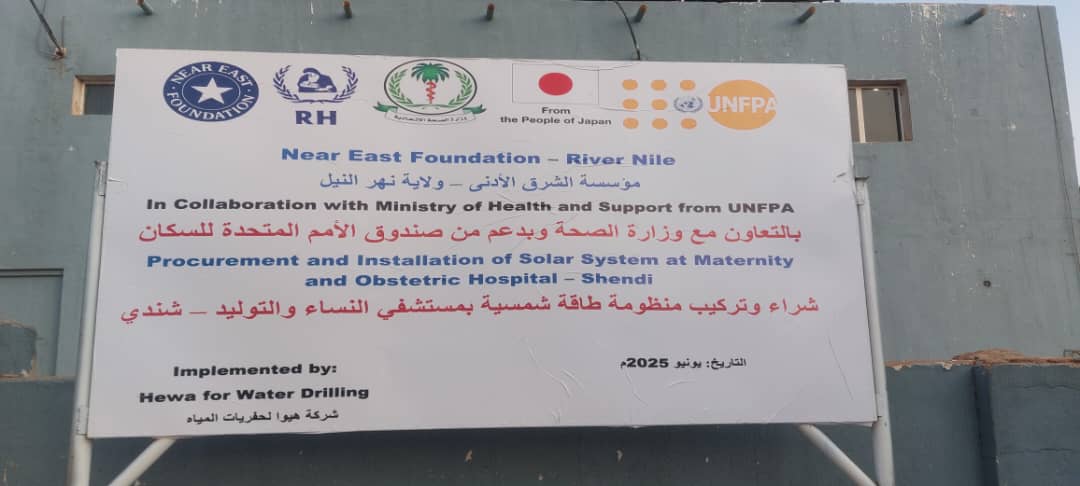 واشار مدير مستشفى شندي التعليمي دكتور كمال الامين عثمان ان منظومة الطاقة الشمسية تمت بدعم كامل من صندوق الامم المتحدة للسكان UNFPA وتنفيذ من مؤسسة الشرق الآدني ولاية نهر النيل