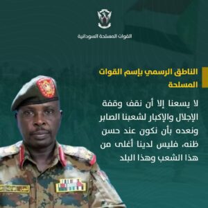 الرئيسية/تصريحات للناطق الرسمي باسم القوات المسلحة السودانية/FB_IMG_1687553448180 FB_IMG_1687553448180