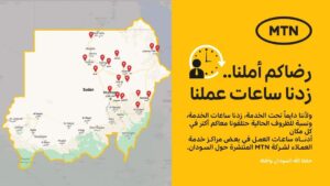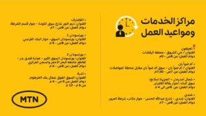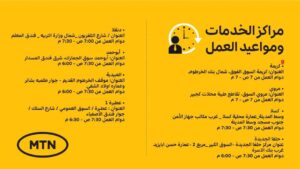 ادناه ساعات العمل في بعض مراكز خدمة العملاء لشركة MTN المنتشرة حول السودان