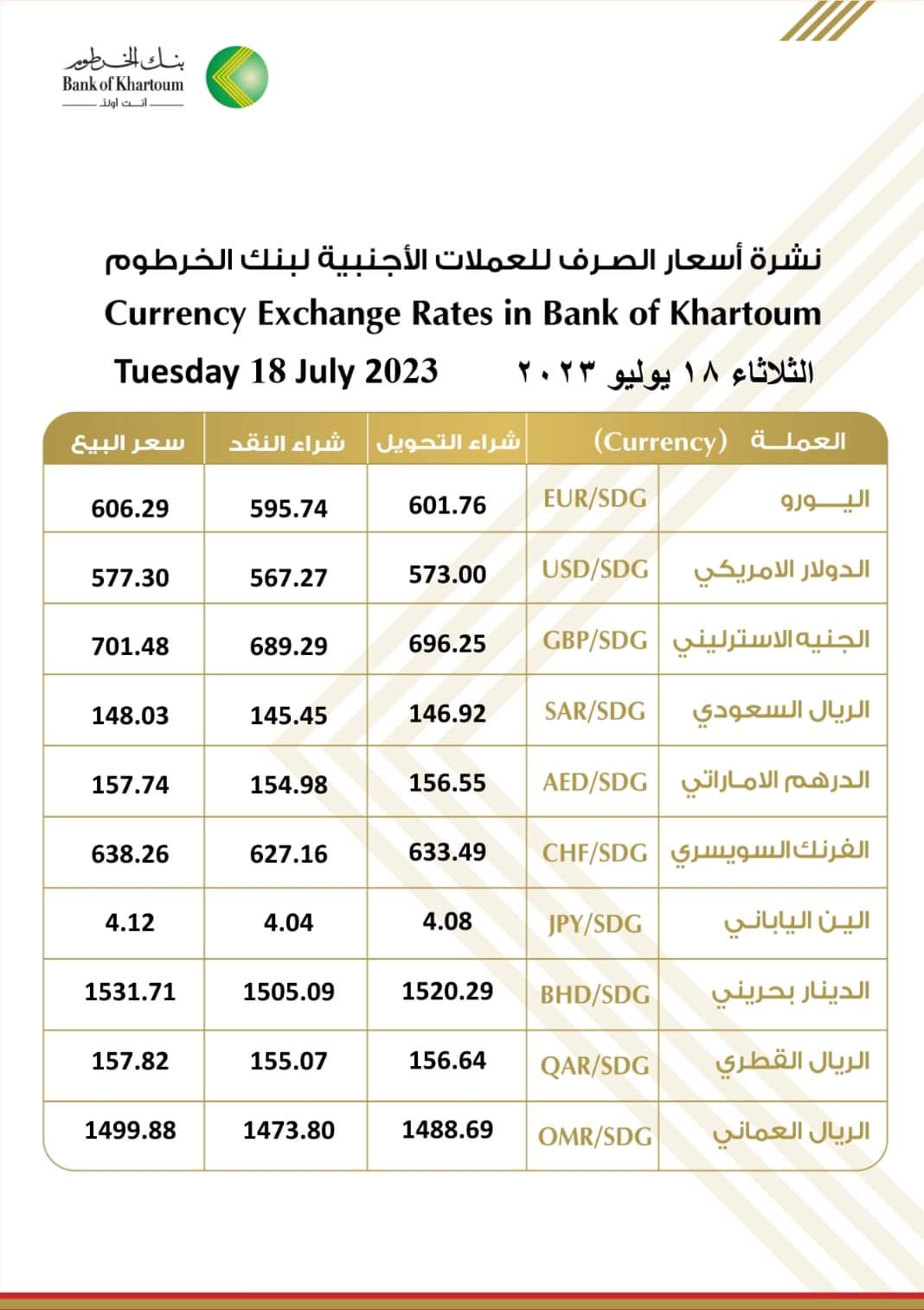 الرئيسية/اسعار العملات العربية والعالمية مقابل الجنيه السوداني اليوم الثلاثاء الموافق ١٨ يوليو ٢٠٢٣م/FB_IMG_1689660442208 FB_IMG_1689660442208