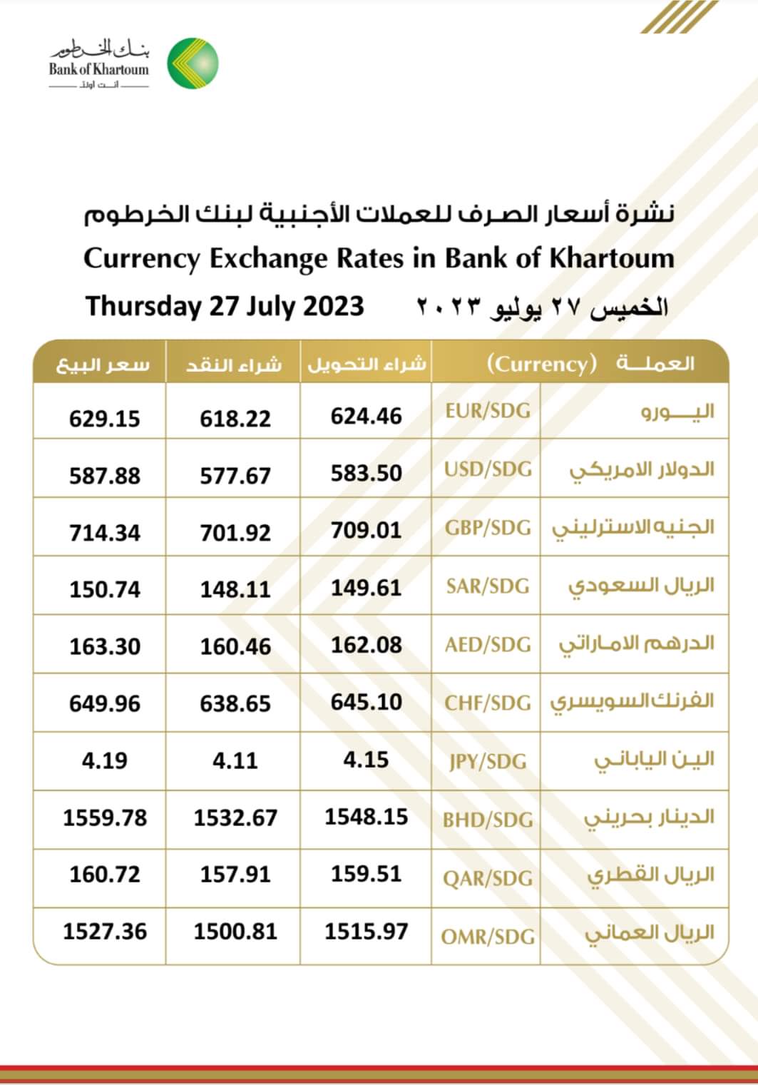 الرئيسية/اسعار صرف العملات الأجنبية والعربية مقابل الجنيه السوداني اليوم الخميس الموافق ٢٧ يوليو ٢٠٢٣م/FB_IMG_1690439949362 FB_IMG_1690439949362