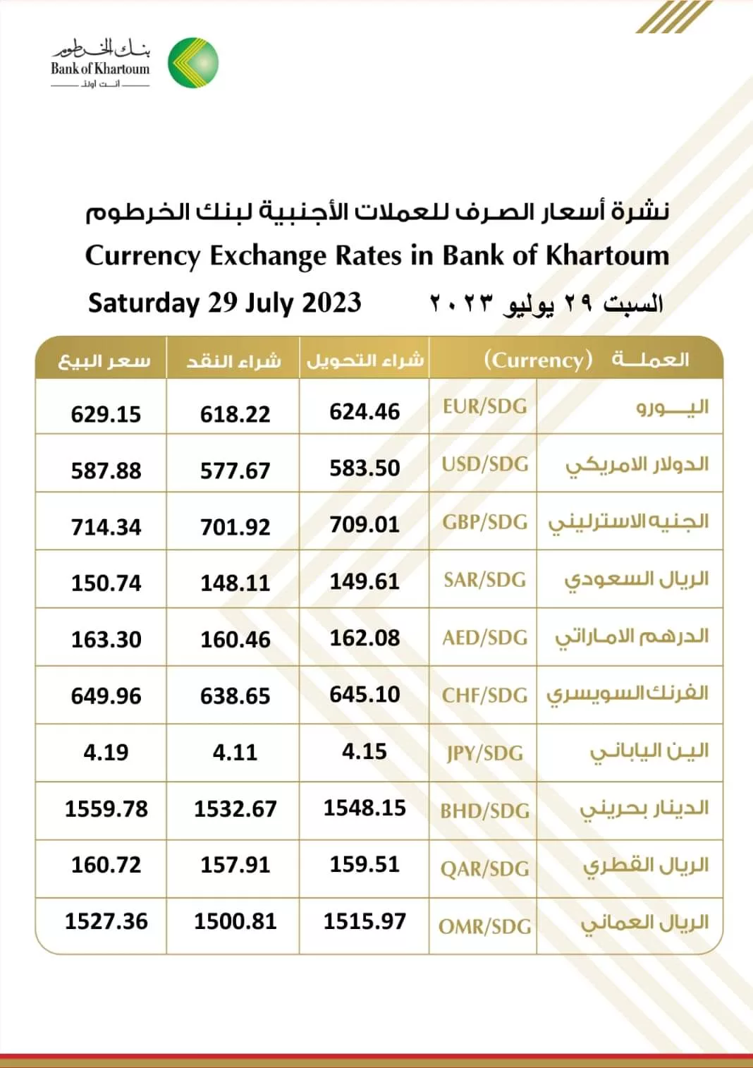 الرئيسية/اسعار العملات العربية والاجنبية مقابل الجنيه السوداني اليوم السبت الموافق ٢٩ يوليو ٢٠٢٣م/FB_IMG_1690611569208 FB_IMG_1690611569208
