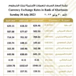 اسعار العملات العربية والاجنبية مقابل الجنيه السوداني اليوم الأحد الموافق ٣٠ يوليو ٢٠٢٣م