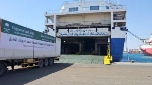 وصول شحنات مساعدات طبية ( ادوية ومستلزمات طبية) معدل (60 شاحنة) الي ميناء بورتسودان اليوم سيقدمها مركز الملك سلمان للاغاثة والانشطة الانسانية الي وزارة الصحة الاتحادية