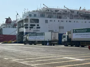 وصول شحنات مساعدات طبية ( ادوية ومستلزمات طبية) معدل (60 شاحنة) الي ميناء بورتسودان اليوم سيقدمها مركز الملك سلمان للاغاثة والانشطة الانسانية الي وزارة الصحة الاتحادية