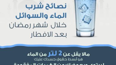 ⭕ نصائح شرب الماء والسوائل خلال شهر رمضان بعد الافطار !!! 🔵مالا يقل عن 2 لتر من…