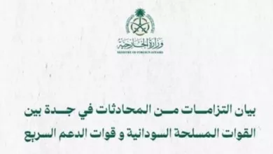 عام / صدور بيان التزامات من المحادثات في جدة بين القوات المسلحة السودانية وقوات الدعم السريع جدة 23…
