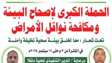 دشّن والي الولاية الشمالية، أ/عابدين عوض الله، اليوم حملة كبرى لإصحاح البيئة ومكافحة نواقل الأمراض بمحلية دنقلا، برعاية المدير التنفيذي…